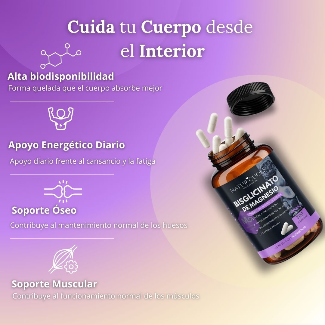 El Bisglicinato de Magnesio en Cápsulas Veganas es un complemento alimenticio de alta calidad, pensado para acompañarte en tu bienestar diario de forma natural, eficaz y segura.