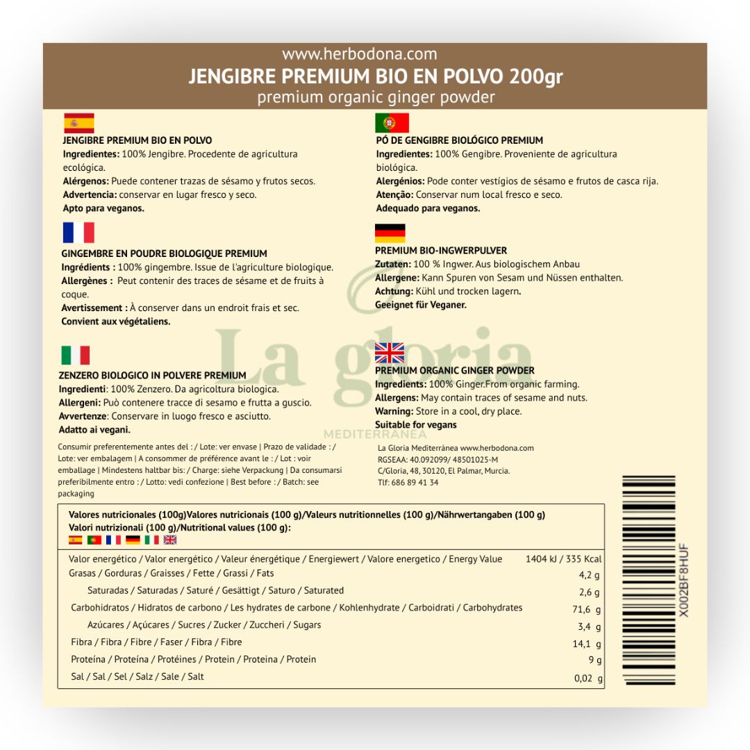 Jengibre en Polvo Natural Ecológico 100% Bio | 200g | Deshidratado, Bio, Ideal para Cocina, Tés y Suplementos – Ginger Powder – La Gloria Mediterránea